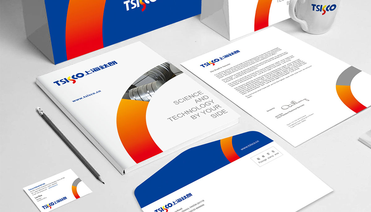 此次方案設計目的是為上海鈦朗金屬材料有限公司提升品牌策略,標志整體呈現流線狀,圓環輔助圖案設計象征金屬行業集聚和產業鏈條。其視覺形象不同于傳統金屬行業品牌,以高飽和紅藍對比給人全新的視覺感受。