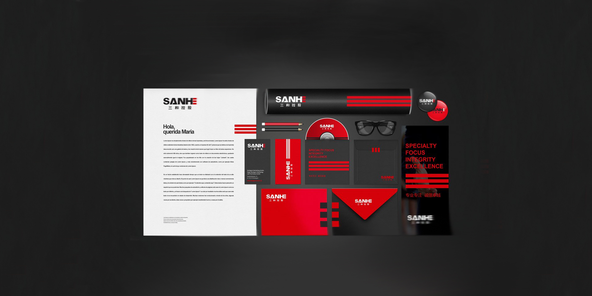 針對浙江三和控股集團,木馬設計為其品牌設計了一套簡明干明的品牌形象,采用紅黑色調結合無襯線字體,充分考慮其識別性與傳達性,展現專業簡練的品牌視覺形象。