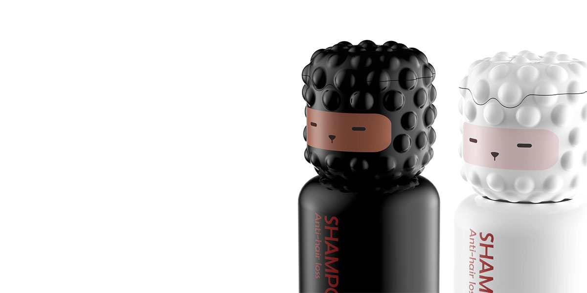 “黑羊”有黑發(fā),養(yǎng)發(fā)的諧音,羊形象濃密的毛發(fā)具有強烈的形象記憶屬性。外形與市場上現(xiàn)有產(chǎn)品差異大,極簡可愛的表情輕松詼諧。慵懶的表情拉進距離感,可愛的外形別具一格.