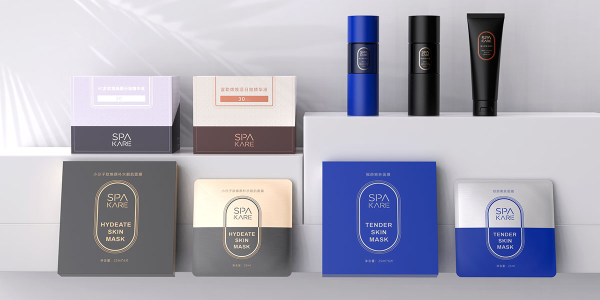 成熟穩重的配色方案,彰顯品牌穩重的氣質。凹凸的肌理強化產品質感,前衛的英文字母排版,緊跟時尚前沿。精華與面膜的設計貫徹一致風格,形成統一的視覺風格。
