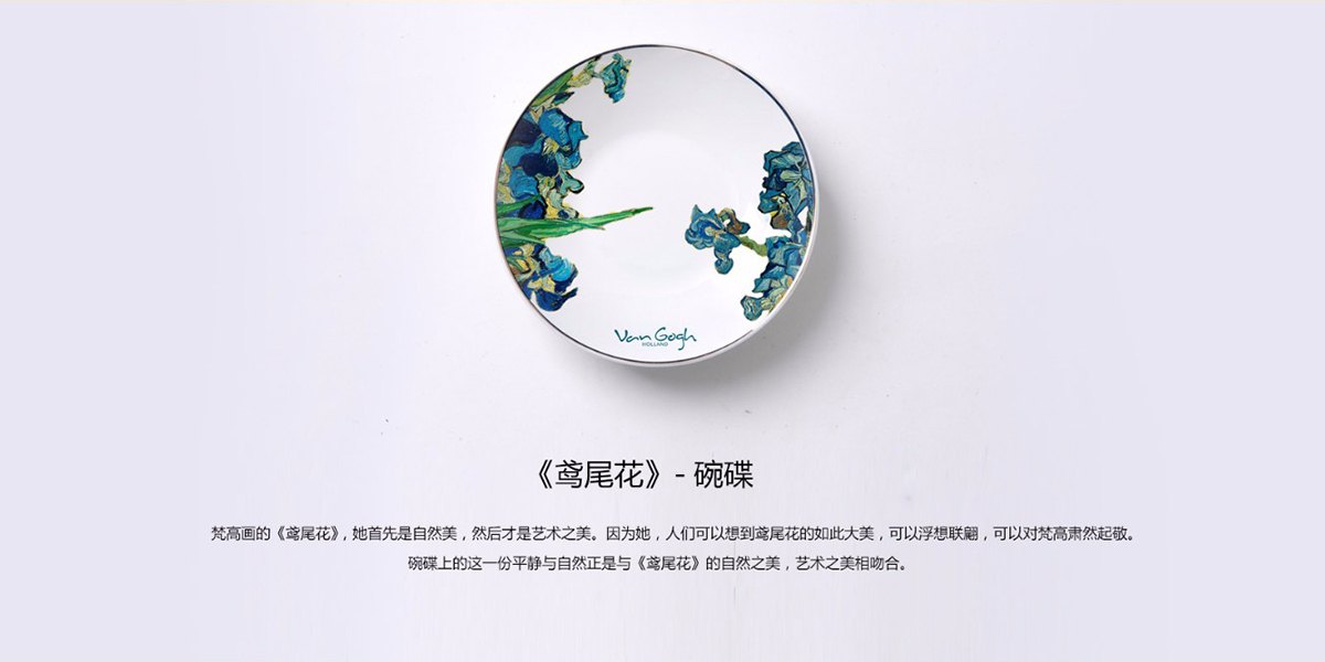 此方案中以梵高博物館正版授權的梵高八大作品為藍本,從梵高大量著名畫作中提取元素,多次調整所用圖案的色調、面積、排布等細節。最終形成的產品涵蓋枕墊、餐具等家居飾品,以及多種數碼周邊產品,范圍囊括生活衣食住行至創新科技。