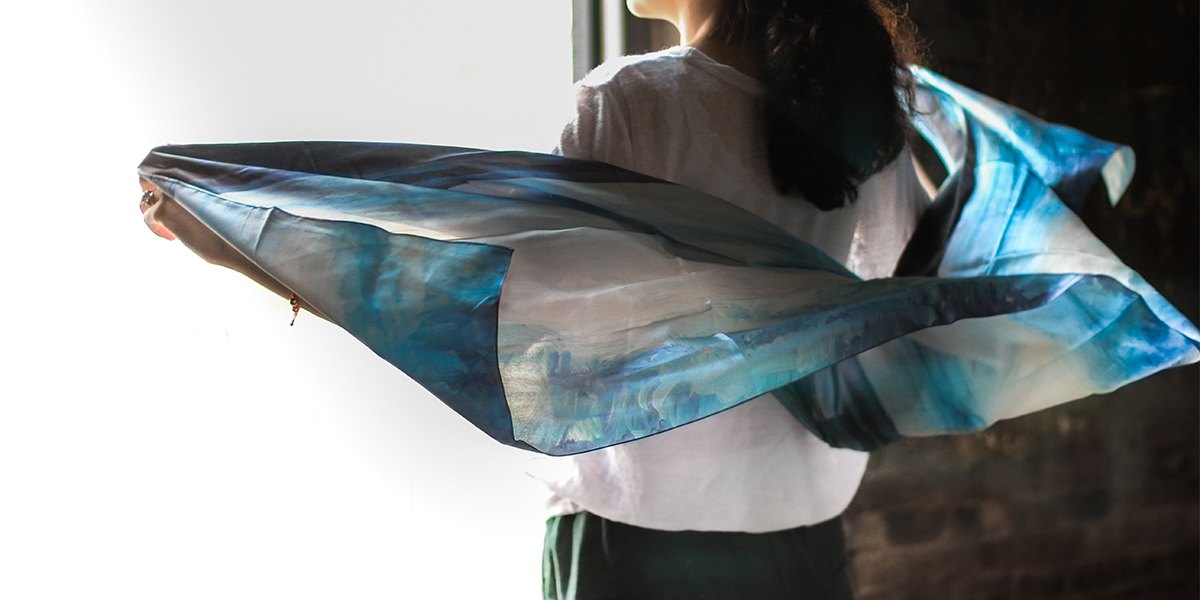 由畫(huà)作《海平面》激發(fā)靈感,木馬設(shè)計(jì)旗下M50漫生快活的設(shè)計(jì)師聯(lián)合木馬丁老師設(shè)計(jì)《海平面》絲巾,用絲巾的飄逸、通靈,展現(xiàn)海天一線的自由與遙遠(yuǎn)。同時(shí)也給人將海天一線包裹周身的大氣與灑脫之感。