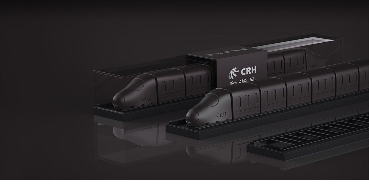 木馬設計團隊結合傳播高鐵文化的設計理念,造型上采用中國高鐵列車的造型,加以提煉簡化。并將鐵軌元素融入包裝設計,給予收藏禮贈非凡意義,同時賦予高鐵巧克力獨特品牌價值和中國魅力。