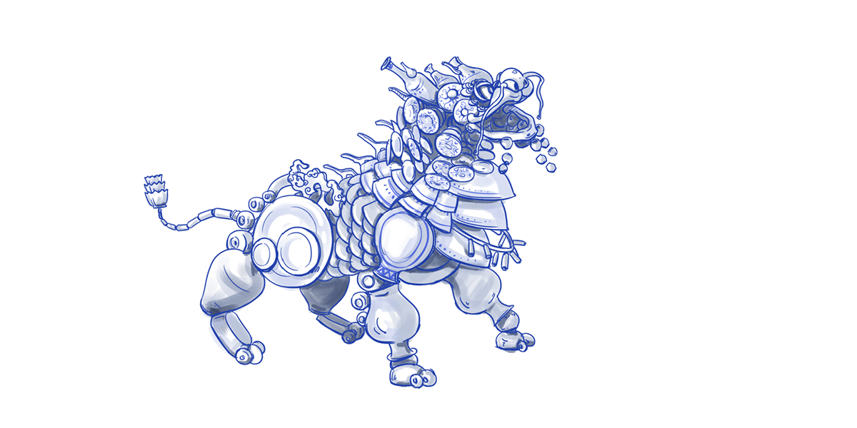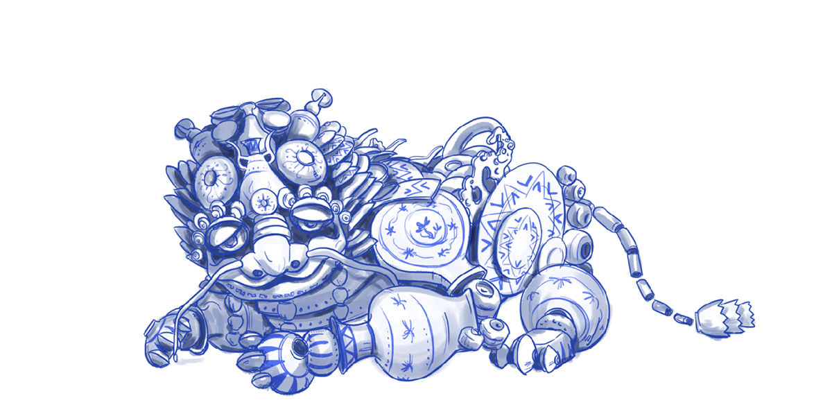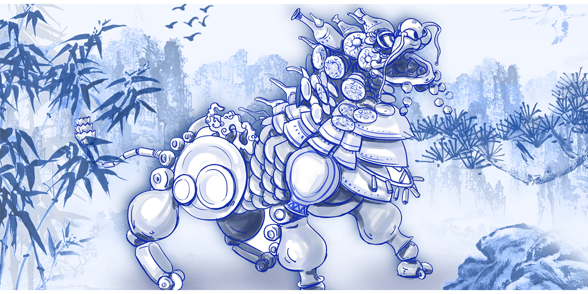 傳說中,在瓷世界里,一切生機盎然,在生態圈的頂端,有一個精靈和五個瓷瑞獸,瑞獸們守護在一條“瓷河”沿岸。HUA是一只由著名青花瓷構成的瓷世界瑞獸。他活力、動感、單純、自信、一身正氣。
