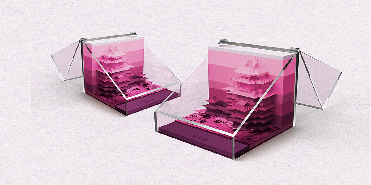 紫東閣融合古典意蘊,韻調南北、兼蓄古今,充分體現了“中而新”、“古而新”的設計理念。此次便利貼設計以紫東閣建筑為設計著眼點,將便簽紙與立體紙雕相結合,以紫色漸變為主體配色,營造出較強烈的視覺氛圍。同時,凸顯紫東閣的歷史厚重,文化積淀。