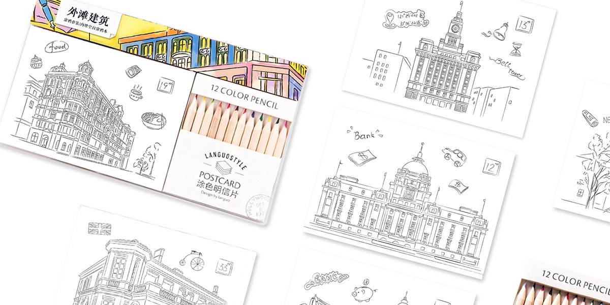 外灘建筑代表整個上海歷史的發展的變遷,本方案將設計師手繪的插畫圖制成明信片,搭配彩鉛做成了具有兒童喜歡的涂鴉套裝,在整個市場銷售中也產生了很好的反響。以獨特的“設計+文化、文創+互聯網”模式,將上海歷史博物館以全新的姿態展現在大眾眼前。