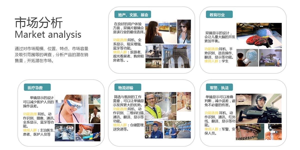 翊視皓瞳打造的專業(yè)領(lǐng)域智能眼鏡,創(chuàng)新性地將智能眼鏡區(qū)分為五大應(yīng)用行業(yè),并根據(jù)不同行業(yè)的需求點進行針對性設(shè)計,準(zhǔn)確敲打產(chǎn)品的設(shè)計痛點,呈現(xiàn)出一系列兼具科技美感和功能性的智能穿戴產(chǎn)品。一體式設(shè)計,便捷的人機交互方式,為傳統(tǒng)行業(yè)帶來看得到的工作效率提升。