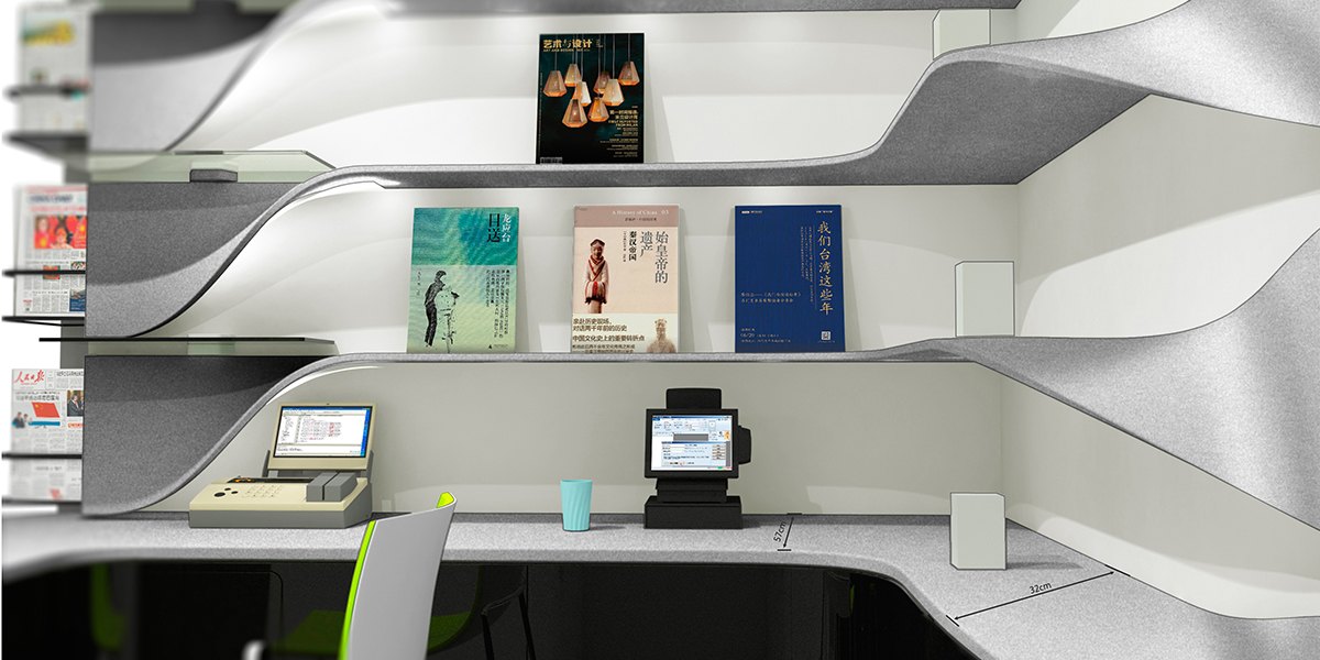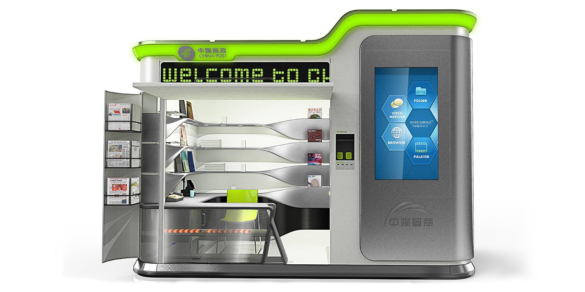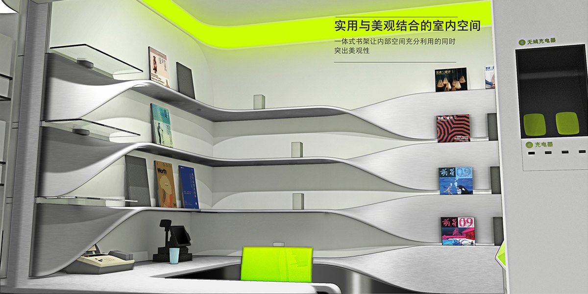 通過對中國郵政的文化背景研究,提出“以人為本”親民、便民的設(shè)計(jì)理念。其柔潤的圓角和流暢的曲線為產(chǎn)品增添親和力,簡潔的外觀與內(nèi)部流暢的曲線和燈光效果相呼應(yīng),凸顯產(chǎn)品的科技感同時(shí)又不顯得沉悶,多功能和模塊化設(shè)計(jì)更是人性化設(shè)計(jì)的主要體現(xiàn)。