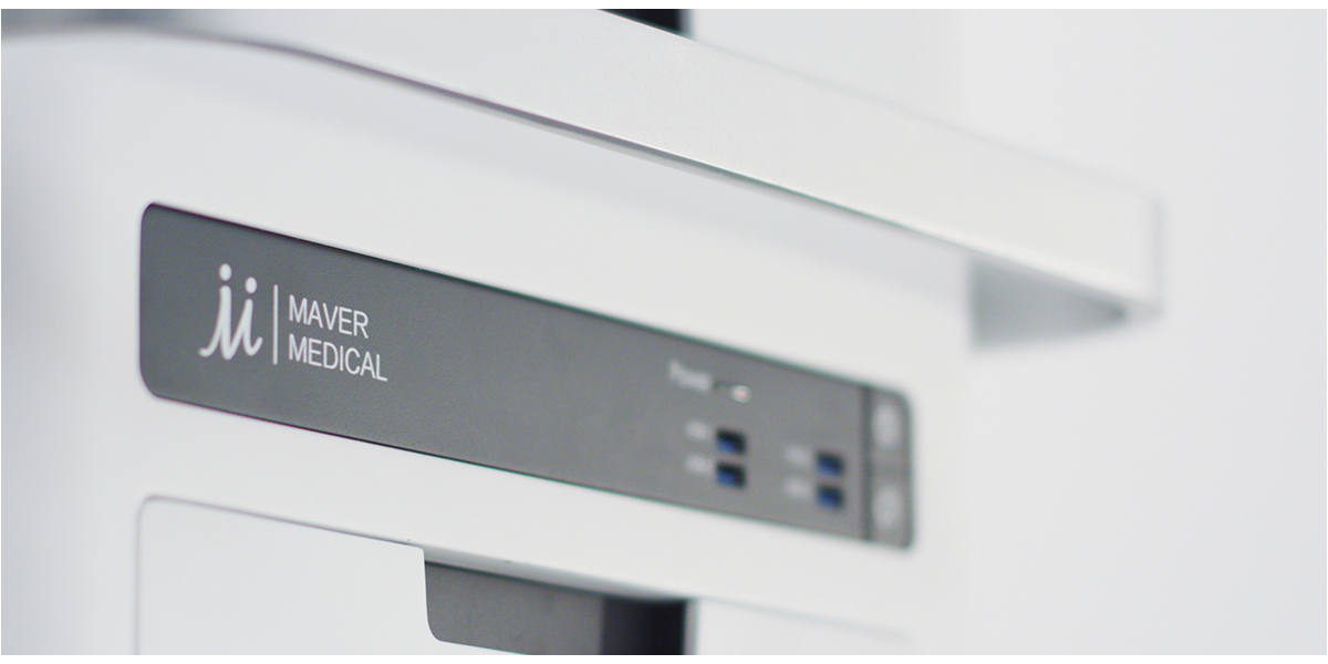 新一代的設備擺脫了傳統的方式,使患者身穿便服即可進行測量。其外觀采用“C 形臂”的設計語言,將兩臺獨立的深度攝像頭融合于一根臂桿之中,同時與機身側面的弧線相呼應,提升了整體產品的優雅感與親和力。