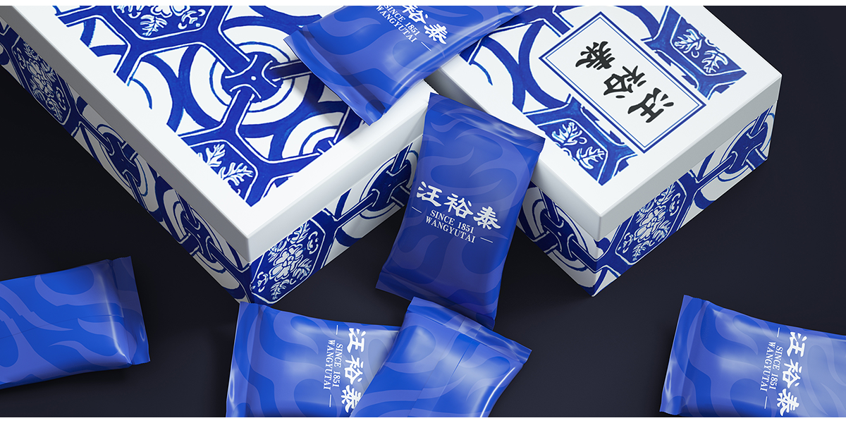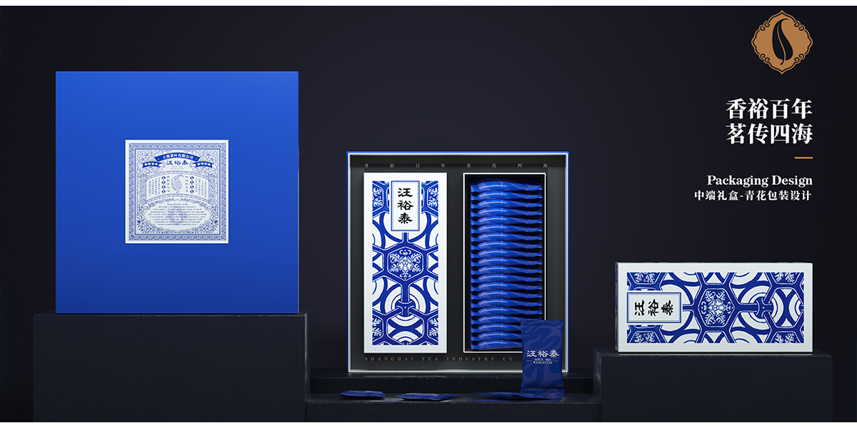 汪裕泰經典青花瓷系列包裝設計,靈感來自于汪裕泰在民國時期出口的一款產品包裝,較好地體現出海派洋氣的格調,色彩和圖案取自于青花瓷,這是東方古典審美和海派審美的融合。將高中低產品包裝賦予不同的品牌視覺傳導,兼具復古與時尚感,并以高端產品建立品牌美譽度。