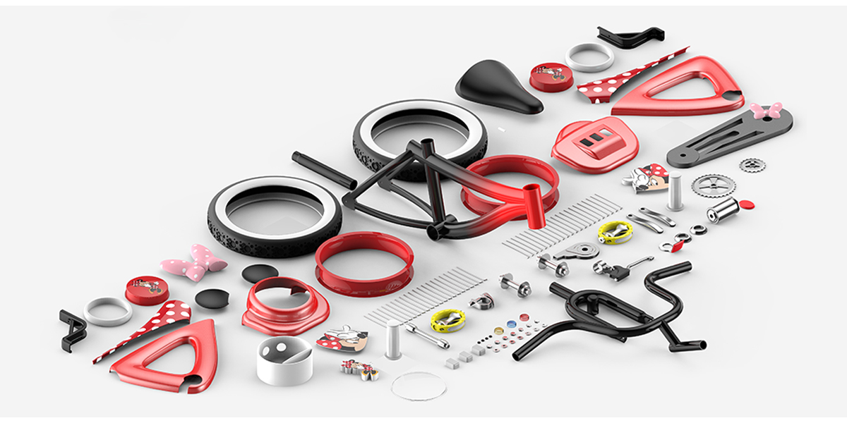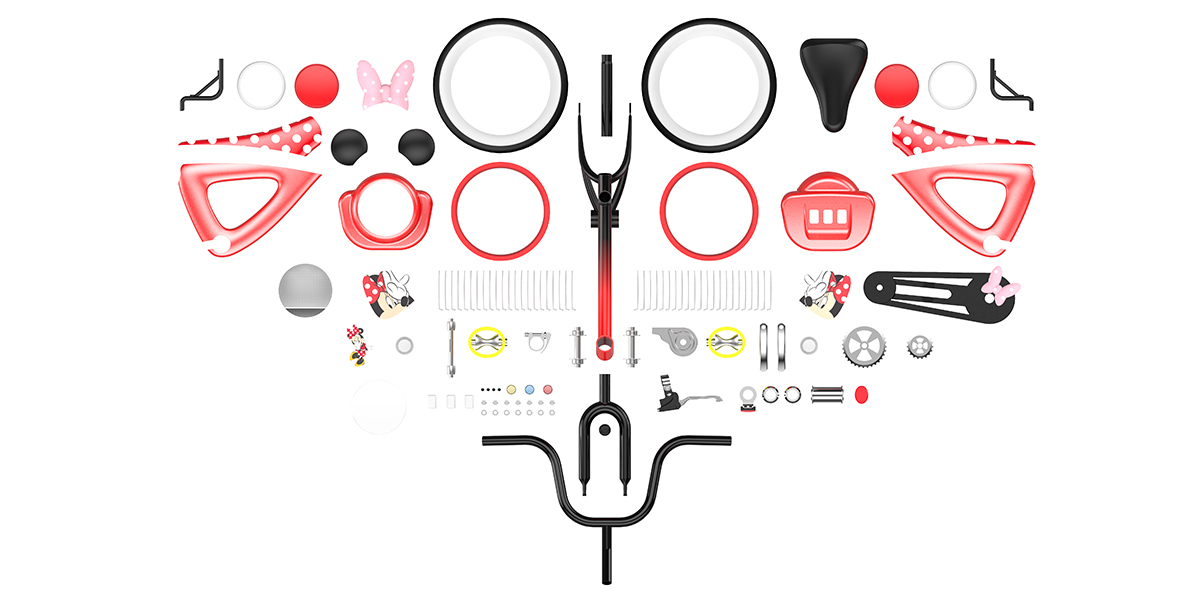 產品運用簡約的設計語言進行外觀設計,運用不同的表面處理工藝提升產品價值感和美觀性,提供多樣的配色以滿足用戶多樣的審美需求。改變過去在兒童自行車產品上對迪士尼IP形象元素過于簡單直接的運用,能夠有效地提高客戶的品牌形象和品牌價值。
