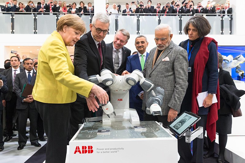 德國總理默克爾握手木馬設計參與開發的ABB機器人YUMI