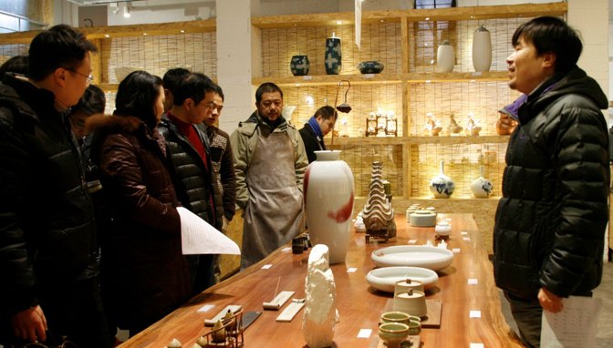 徜徉在精致的各具特色的陶瓷里,沐浴在清揚的琴音間,輕撫雅致的各色器物,細聽丁偉老師的漫談陶瓷往事。期間前后有半個小時余,丁偉老師講述了卡爾劉的折扇,也講述了自己的作品書法系列,講述了美院學生王平新釉彩的創新應用,設計師王兵市場與需求的思考,也講述了董濤老師孜孜不倦的藝術追求,清華美院高才王國棟精湛的藝術創造。在這些優秀的作品里,在這些資深設計師的經歷中,丁偉老師思考并評析了一個成功的設計師其作品如何成功得到市場的廣泛認可,也分析了失敗的設計師為何其作品沒有良好的市場接受額度。最后,丁老師以一句頗有哲理的話結束了今天每日一講的開篇:對于設計藝術,我們不爭論,不辯解,不過分的堅持,讓本性自然的流露,也許有一天我們會走向自我的反面。 分享故事,分享經歷,讓心與心更近,讓團隊擁有凝聚力。預祝大家廣泛參與活動,使活動越辦越好,越辦越彩。