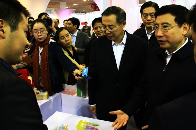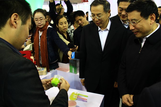 苗圩部長饒有興致地觀看了參賽展品,特別在木馬展臺前駐足欣賞,認真聽取了木馬主管顧聞對產品的講解。對木馬所設計的貝親兒童餐具很感興趣,還特地認真地詢問此產品的設計概念和材料屬性,并談到兒童是祖國的未來,給兒童使用的產品一定要是健康安全,容不得半點馬虎。