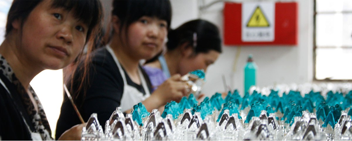 寶應縣小官莊鎮被稱為”東方圣誕禮品之鄉“,其玻璃制造技藝主要運用于禮品的生產,其中國外客商訂購的圣誕禮品居多,占全球很大市場份額。由于缺乏原創能力,大部分都是按圖紙加工,訂貨商更關注生產成本。為了讓小官莊鎮的禮品玻璃制造更具有市場競爭力,設計立縣計劃團隊赴寶應進行調研,提出:一是加強對國外圣誕文化的研究,開發適合西方文化生活形態的產品,從被動的來樣加工(OEM)向主動推出新產品(ODM)跨越。二是將玻璃工藝與LED、太陽能等新技術嫁接,通過技術的提升進一步提高產品的附加值。三是大力拓展國內市場,挖掘中國傳統節日市場需求,塑造區域品牌形象。