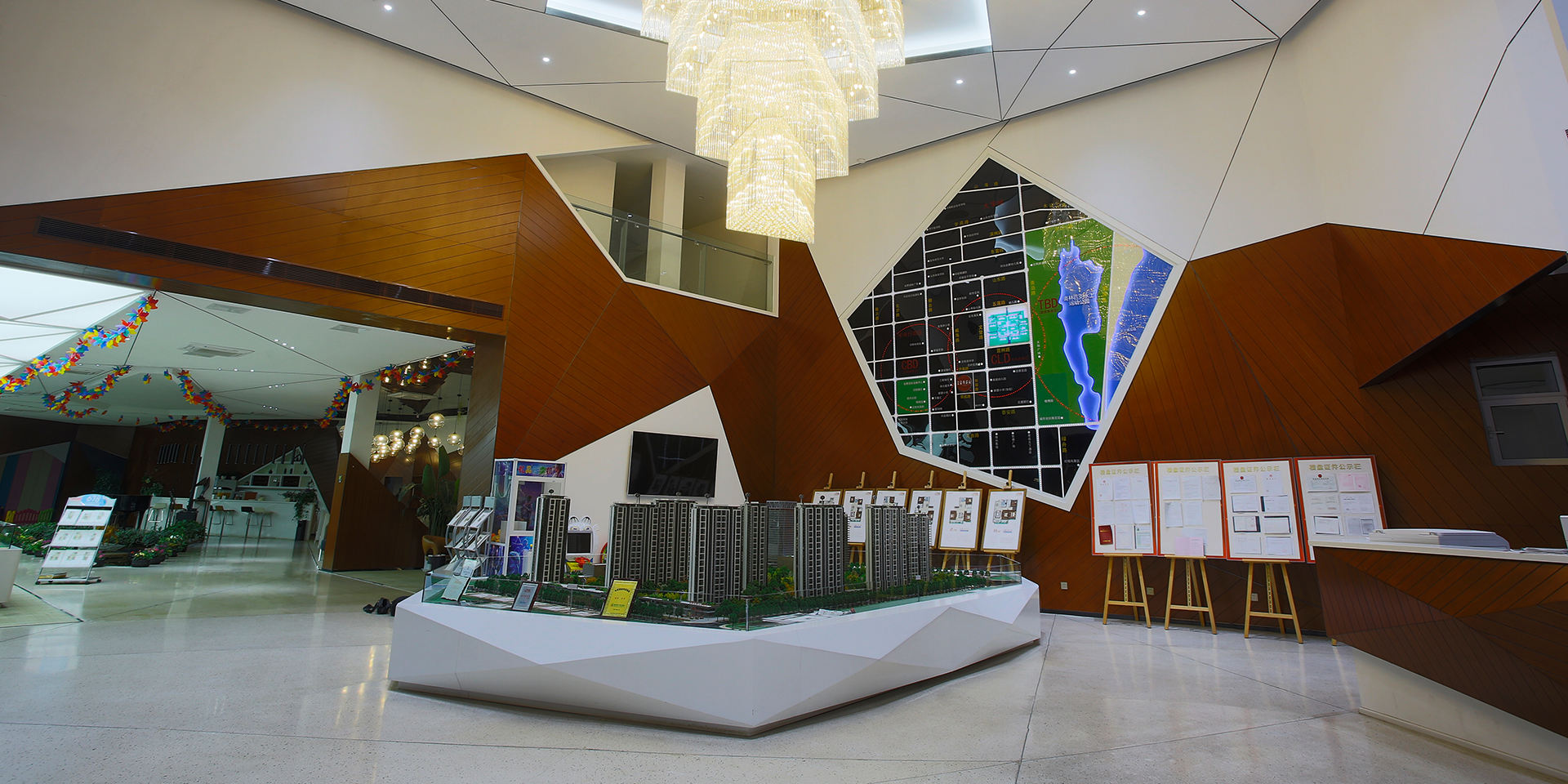 本案是自然與溫暖的交匯相融,讓整個營銷中心呈現(xiàn)出溫馨、賓至如歸的氛圍,在空間關(guān)系上,借助自然元素的融入、光影的調(diào)和,打造出風(fēng)格明顯卻又相互融合的功能分區(qū),完美實現(xiàn)展示樓盤形象、接待客戶、銷售等功能。