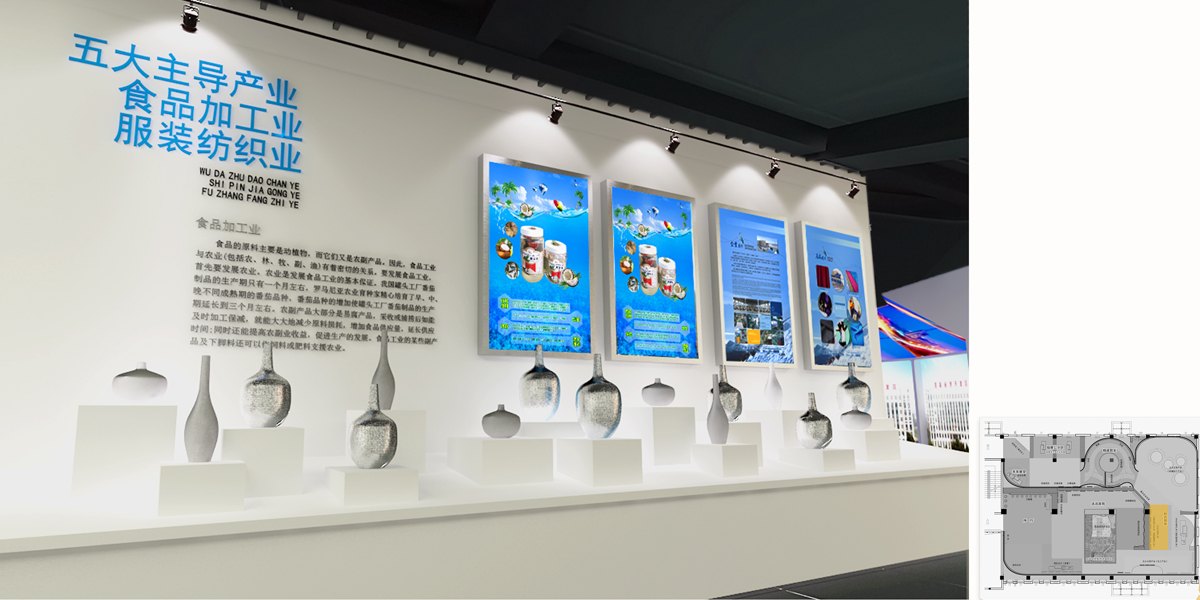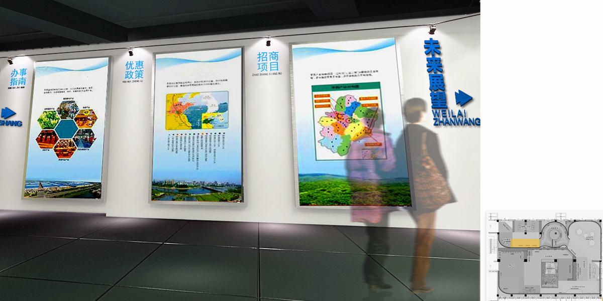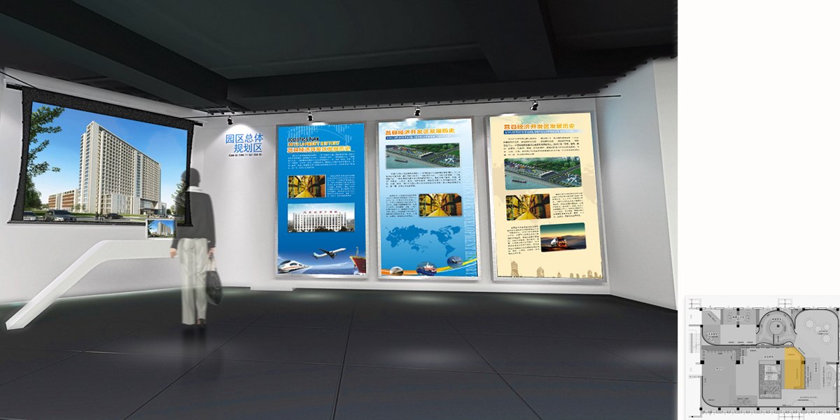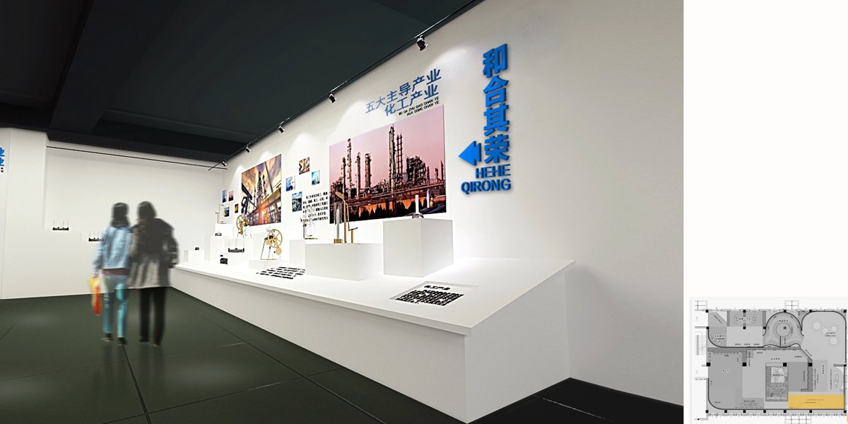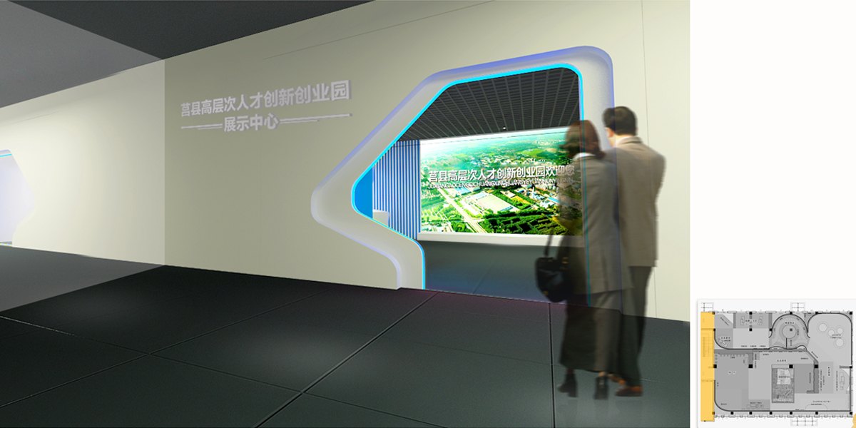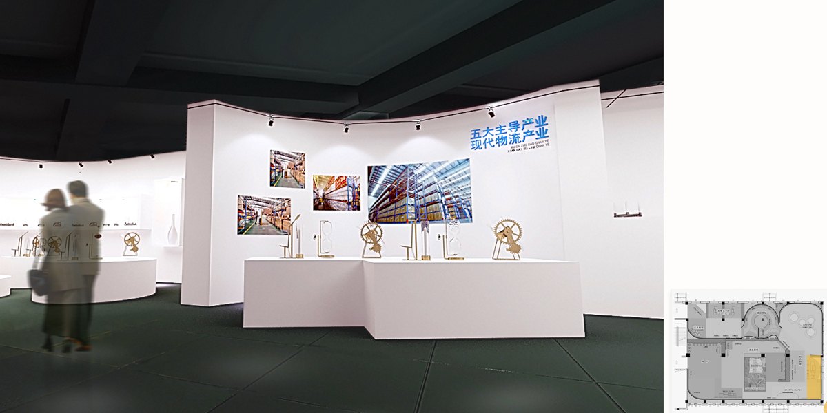 設計以“莒國文化”和“高層次產業”為創意理念來源,并將其作為展示的主要脈絡。空間流線構成為序廳、浩浩其勢、和合其榮、精誠其至、未來展望等七個部分,瀏覽路線清晰且融合,相互共生。動線規劃始終圍繞內容的有效傳遞和情境體驗展開。