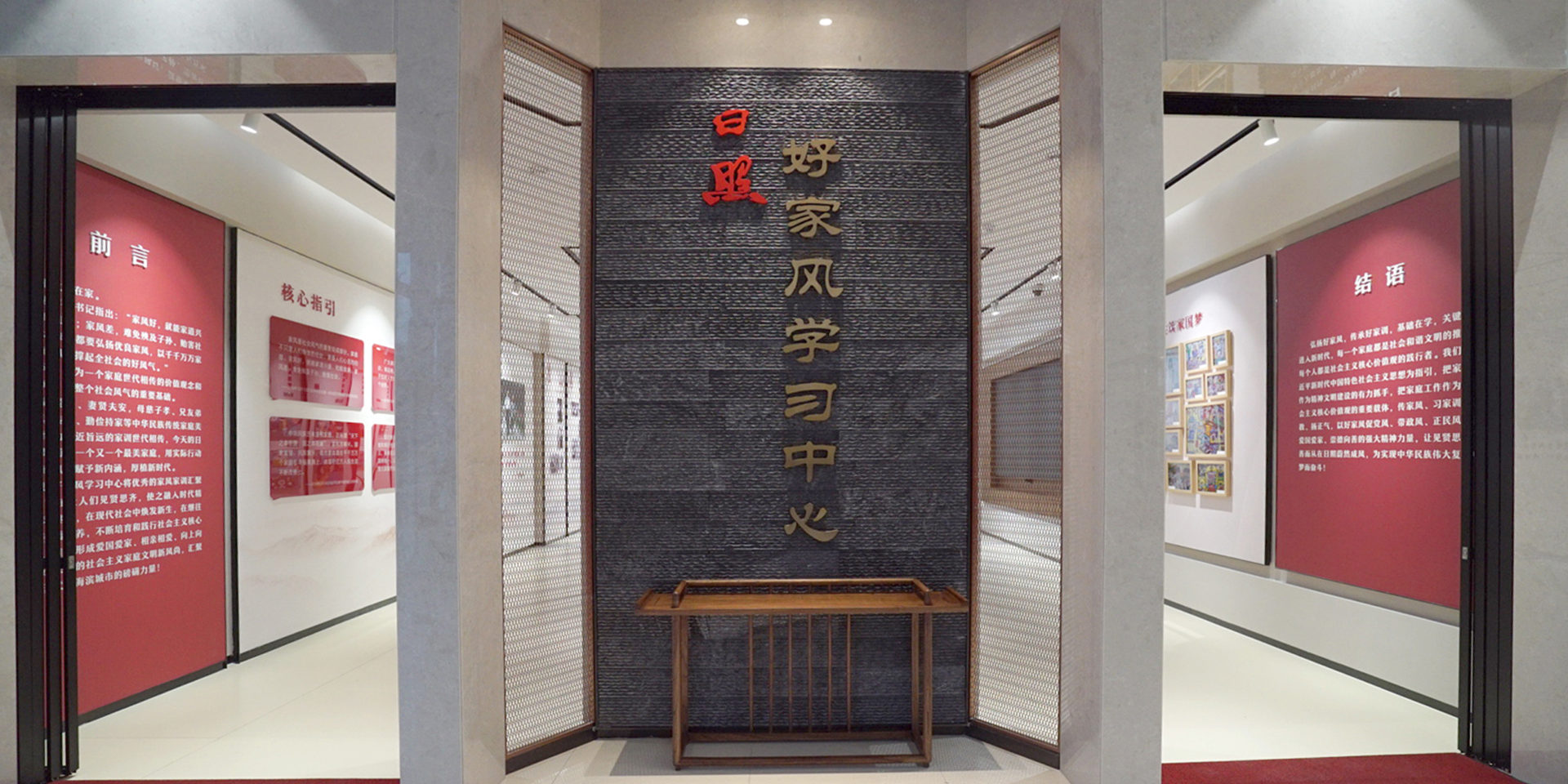 通過空間設計劃分出核心指引、紅色家風、時代楷模、好家風圖解、日照人談家風、家家幸福安康工程六大展示區(qū),并創(chuàng)新性運用圖文教育、影像教學等多種形式相結合的展陳形式,滿足其作為集家風家訓宣傳教育的綜合基地的需求。