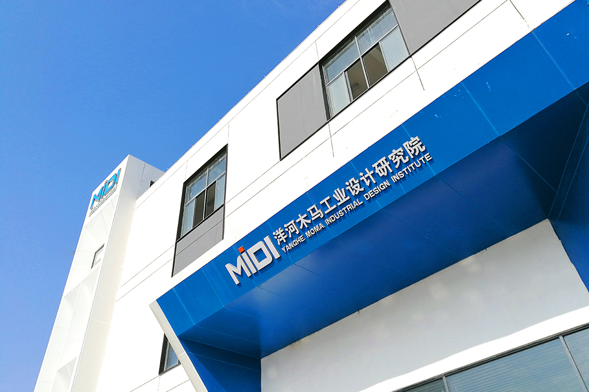 建筑采用了藍(lán)色框景作為局部墻面的面層表現(xiàn),藍(lán)色鮮明的品牌色彩與其測(cè)剖面線條的疊加加強(qiáng)了原有設(shè)計(jì)的張力與節(jié)奏感的塑造。