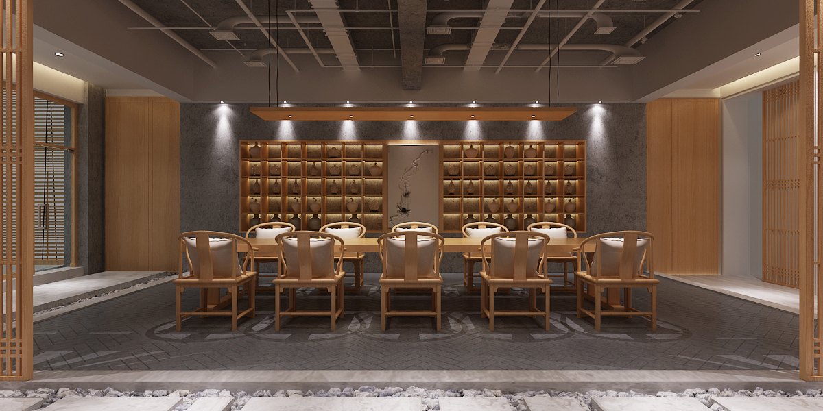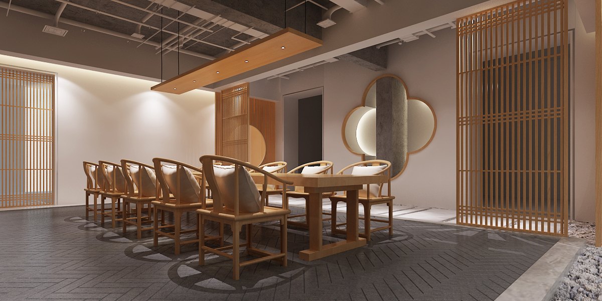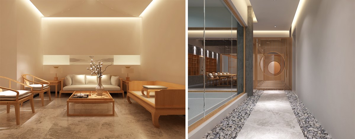 以禪茶貫穿整個會所裝修設計空間,通過儒、佛、道家對茶的不同領悟來確定空間的主調。利用枯山水、竹、鵝卵石、圓景、框景的設計元素,融入現代主義,透過材質的形式變化,突出空間寧靜超脫、通透別致的氛圍,還原消費者所追求向往的世界。