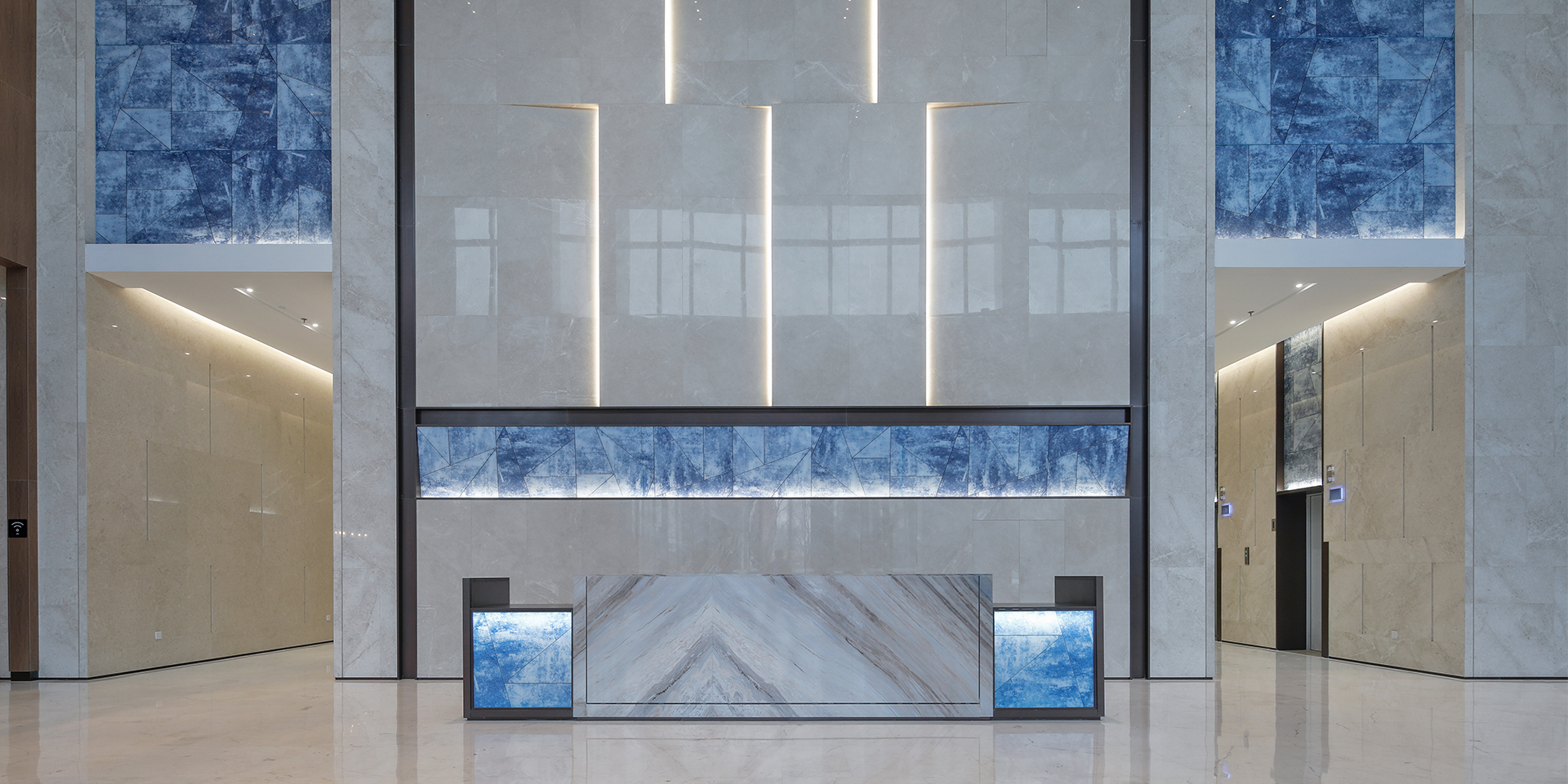 在大堂的空間設計上,要達到氣派莊嚴,具有總部氣魄;穩重時尚,具有深厚文化底蘊;簡潔明亮,具有高科技性的效果。室內設計以雅致沉穩的格調為主,空間布局合理,選材顏色協調,講究細節搭配,層次性搭配,色彩相互搭配,裝飾元素之間相互呼應,色彩秩序層次豐富,著重色…